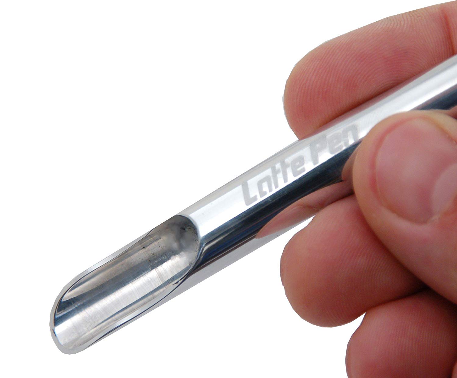 Deze lattepen combineert een melkschuimlepel en een tekenpen in één praktisch hulpmiddel. Zo kan je er meteen de meeste patronen mee maken.